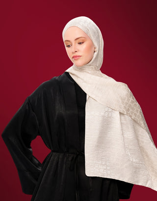 Moi Scarf Perle Premium Jakarlı Şal Kırık Beyaz