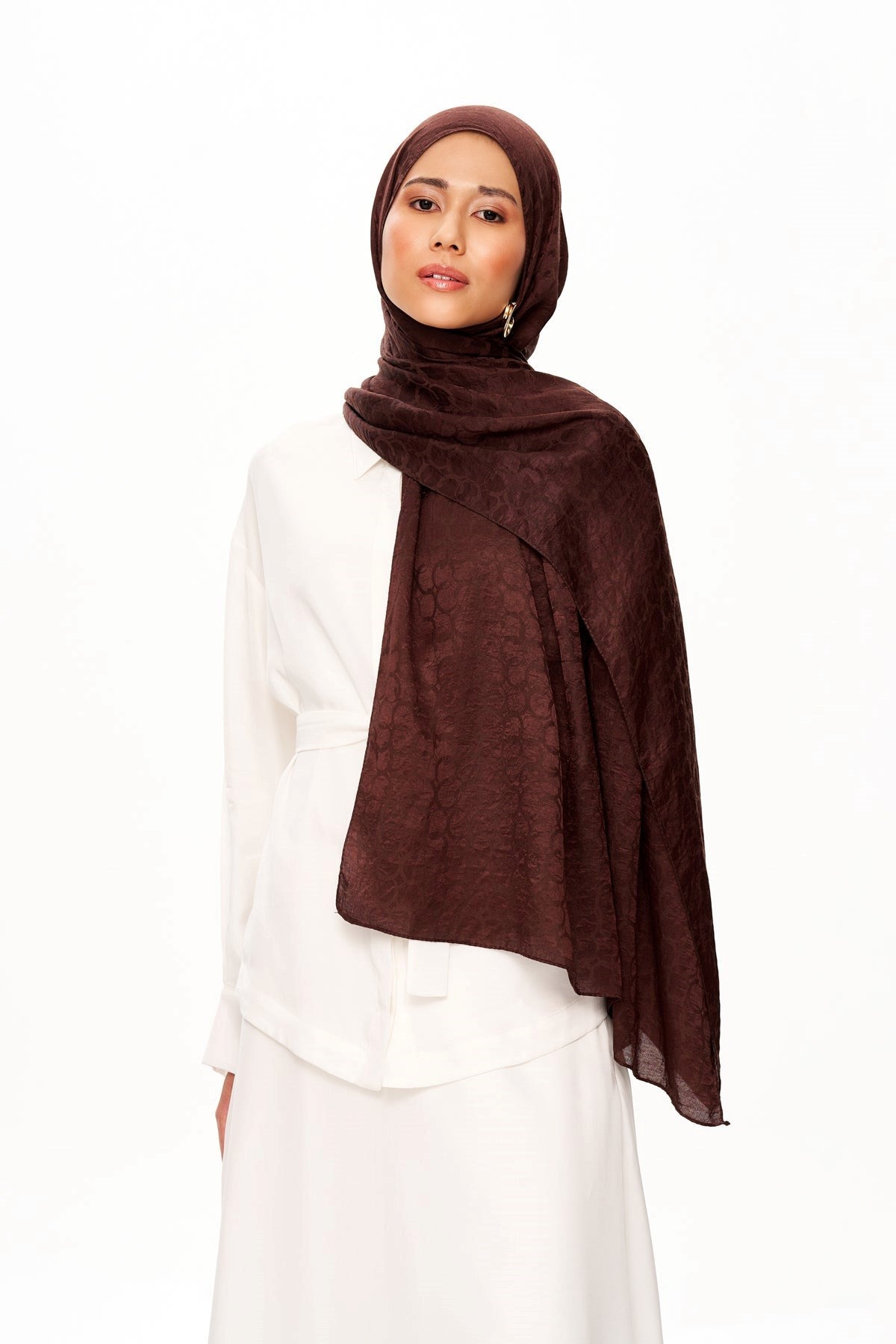 Moi Scarf Perle Premium Jakarlı Şal Acı Kahve