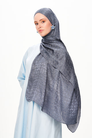 Moi Scarf Perla Premium Jakarlı Şal Saks