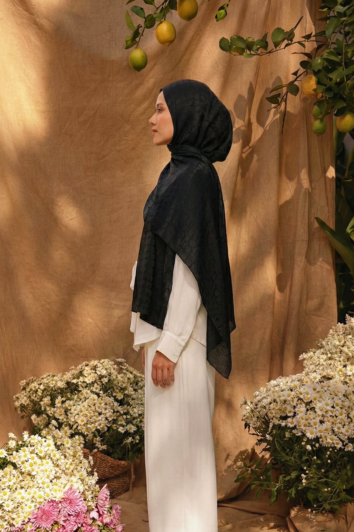 Moi Scarf Perla Premium Jakarlı Şal Siyah